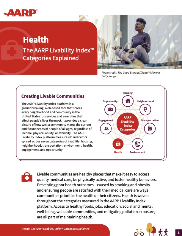 The AARP Livability Index™ scores neighborhoods and communities across the U.S. for the services and amenities that impact you the most.