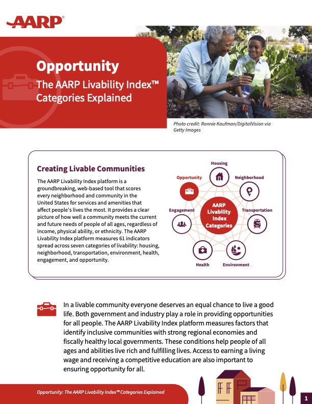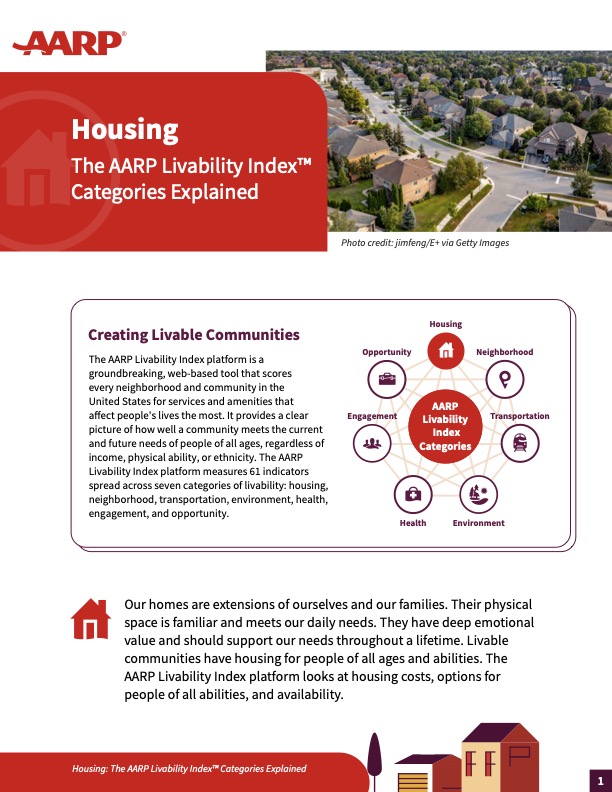AARP, under the guidance of a diverse expert panel, has identified key elements to measure and clearly define livability.
